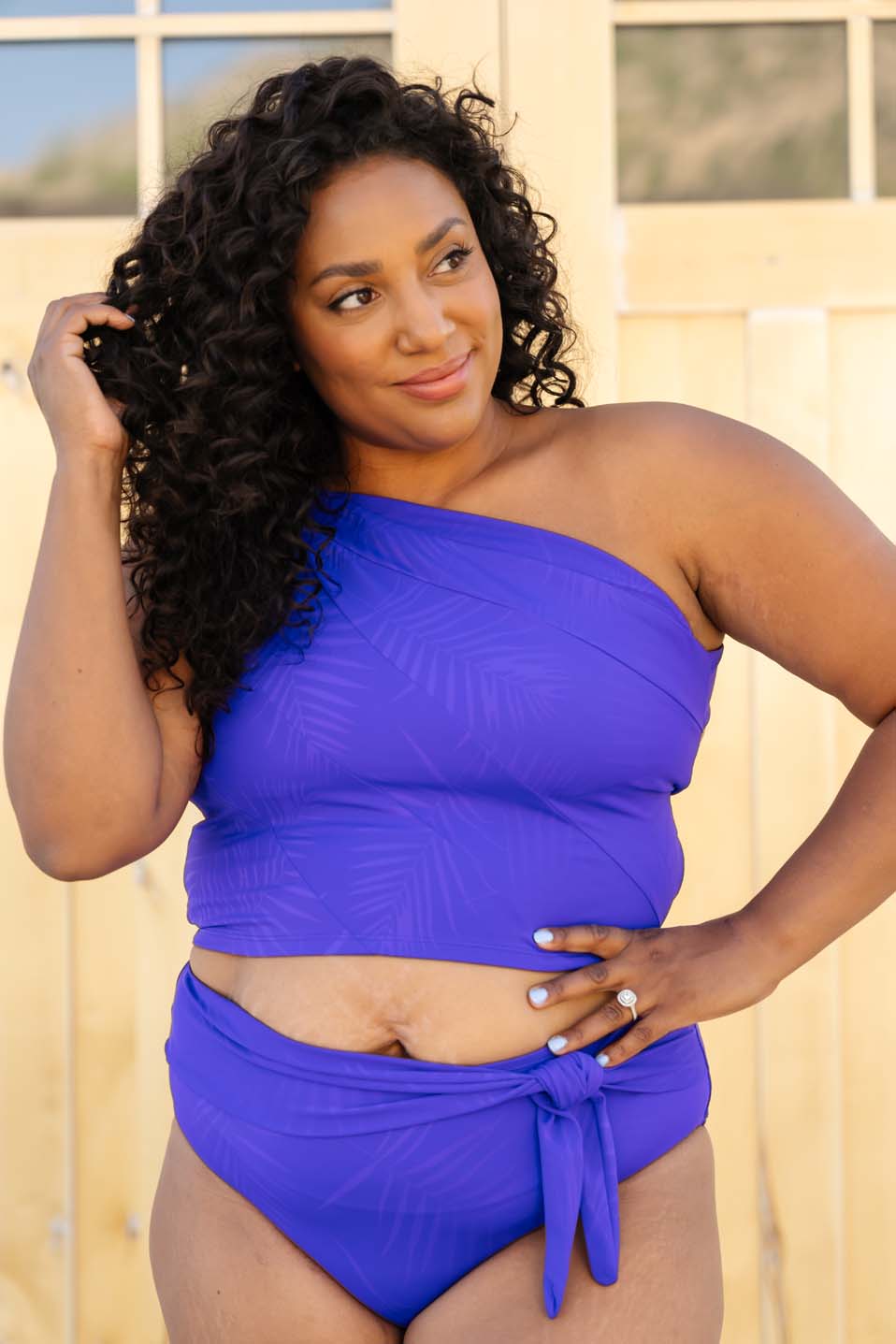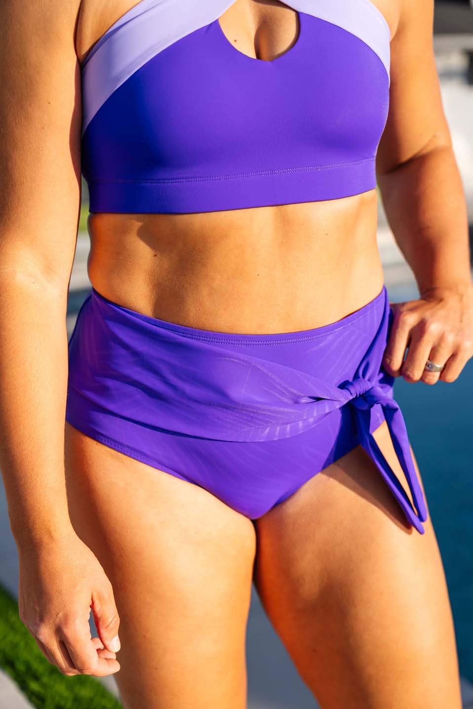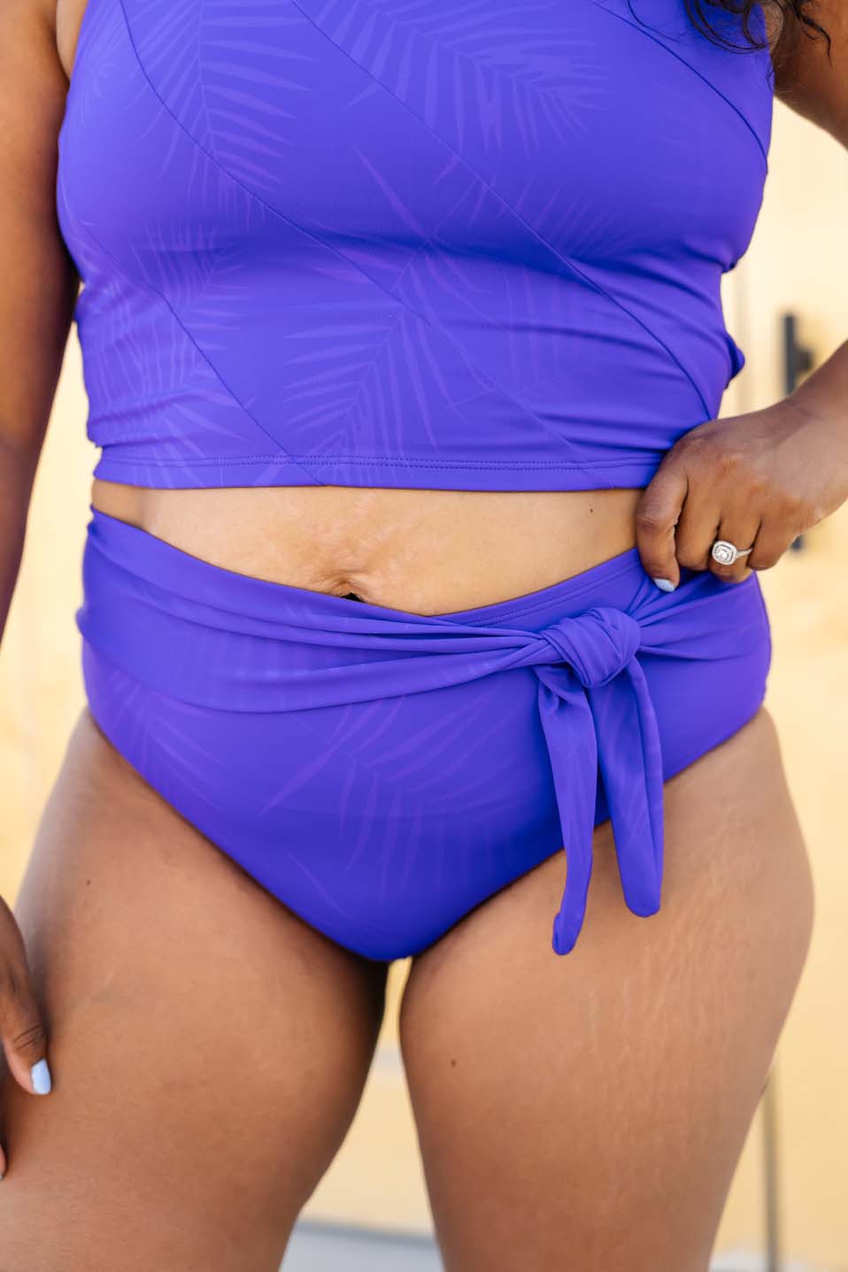 Our Mid-rise designs are our BEST Sellers because they sit right around your belly button! The tie detail sits on the left hip and is my favorite way to cover my c-section "shelf" caused by the scar on my lower tummy. This perfect feminine detail with perfect placement provides support on your lower tummy that feels comfortable and secure. You will love the standard bikini cut over the hip with almost full bum coverage.